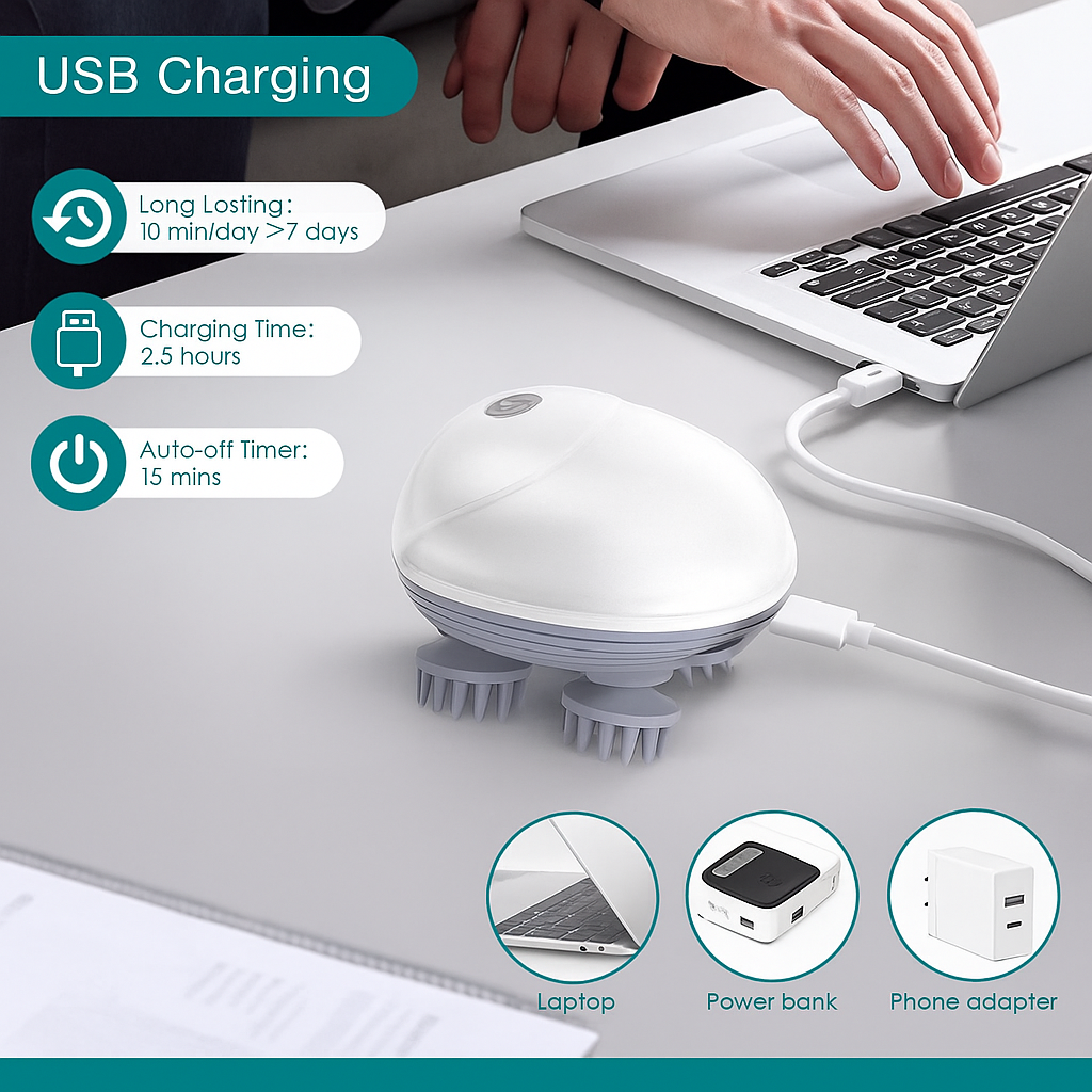 Safe for both wet and dry useāperfect for post-bath massages! The massager runs for up to a week on a full charge and automatically shuts off after 10 minutes of inactivity to preserve battery.