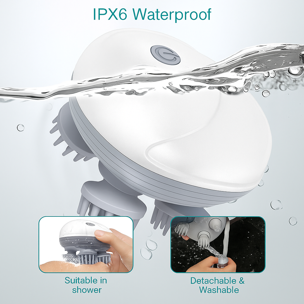 Each of the 4 massage heads features 96 soft, flexible nodes that mimic a human finger massage. Whether itās your petās head, neck, or back, this device brings spa-like relief during rest or bath time. Easy to remove and clean.